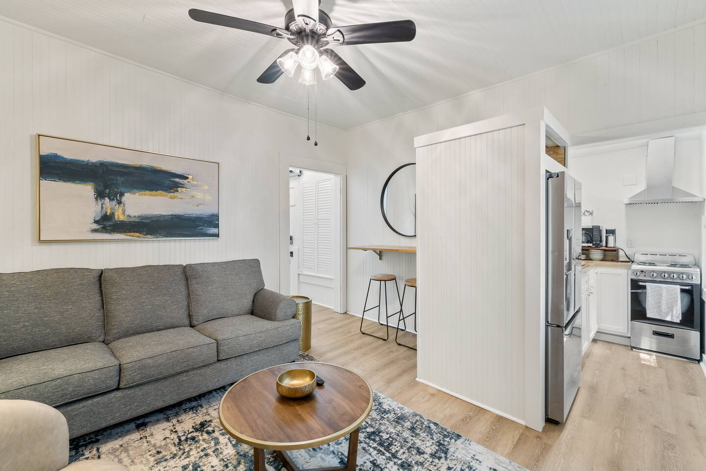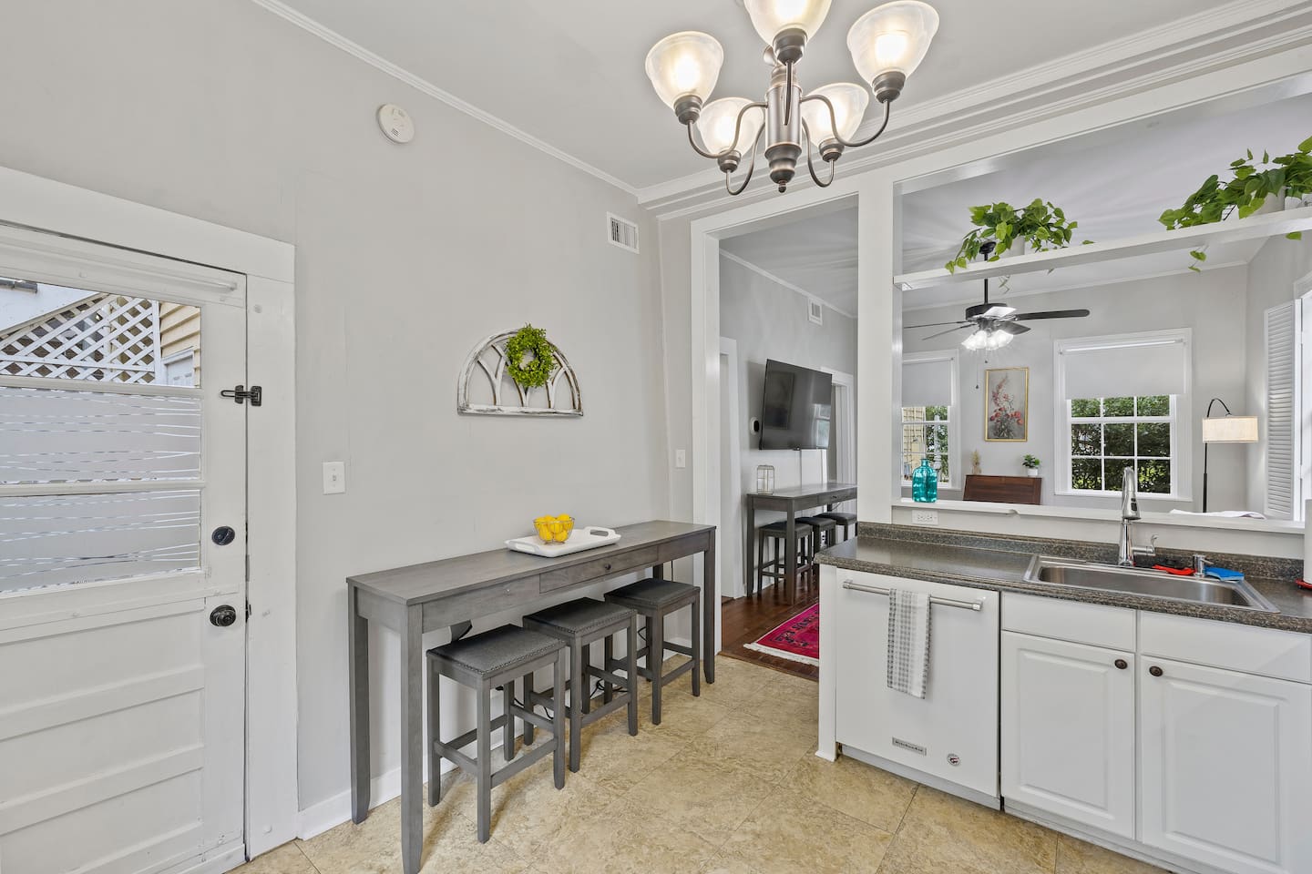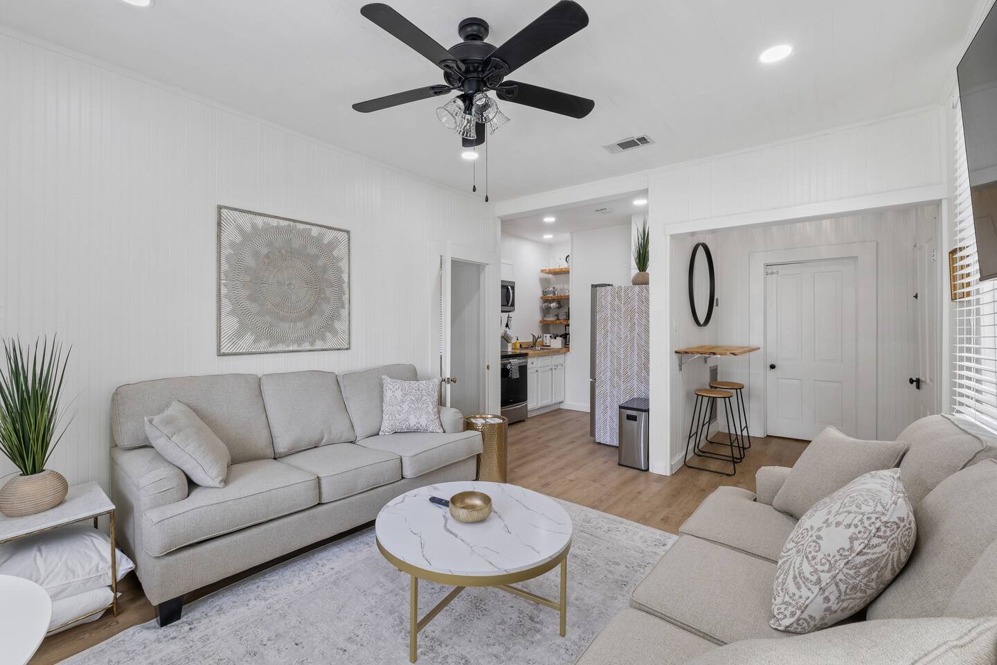 Still with the historic feel of 1899, this home still exudes its original character and charm. Hardwood floors throughout and a mix of antique and modern furniture make this a great spot to enjoy historic Mobile. Book the entire triplex here and the whole place is yours! Our location is just the best toProperty features: ✓ Close By Parks and Walkable Neighborhood: Soak up the peaceful sounds of nature in Washington Square Park or walk to one of the local favorite restaurants in the area. ✓ Central A/C and Heating: No matter if it's winter or summer, the house will be at the right temperature with our heating and cooling system. ✓ Shared washer and Dryer on the property: For those who plan on booking for longer length stays, the washer and dryer will come in handy when it comes time to do your laundry. ✓ Free Parking: Driveway parking and street parking directly in front of the unit. ✓ Covid-19 Compliant: Health, safety, and well-being of our guests are of utmost importance. For this reason, we have a professional cleaning service ensuring a thorough cleaning before you check-in. All Three Kitchens: • Full-size refrigerator, Microwave, Coffee Pot, Filtered Water Pitcher, Oven/stove combo, Pots & pans for the cooktop, Dishwasher (unit 3 only) • Oil, salt and pepper • Complimentary quick breakfast (oatmeal and grits) • Complimentary coffee bar allowing you to brew yourself a warm cup of joe to start off with a gentle boost. • There are enough supplies in each of the kitchens for the amount of people that can stay in each unit (Cutting boards, spoons, knives, and spatulas, etc) If you’re not up for cooking, have peace of mind that a fine selection of dining options are within walking distance including the famous Callaghan's Irish Pub (GET THE BIG MIC) *check out our Guidebook for more suggestions* Unit 1: Living Room: (sleeps 2) • 2 Couches including 1 Queen-size sofa sleeper • table with 2 chairs • 65 inch smart TV with streaming services loaded • Bedding for sofa bed located in a container under the bed in the bedroom Bedroom (sleeps 2) • Full sized bed with memory foam mattress • Private Balcony off of the bedroom - perfect for enjoying your morning tea or coffee • Ensuite bathroom attached • 55" Smart TV with streaming services loaded • Clothes storage including hangers • Iron and ironing board Bathroom: Located directly off the bedroom, custom large shower • Hair dryer • Toilet paper • Shampoo & Conditioner • Soap/Shower gel • Towels, Washcloths, and hand towels (even makeup removal wipes) Office: • desk and chair with gorgeous natural light pouring in at the top of the stairs Unit 2: Living Room: (sleeps 2) • 2 Couches including 1 Queen-size sofa sleeper • table with 2 chairs • 65 inch smart TV with streaming services loaded • Bedding for sofa bed located in a container under the bed in the bedroom Bedroom (sleeps 2) • Full sized bed with memory foam mattress • Private Patio off of the bedroom - perfect for enjoying your morning tea or coffee • 55" Smart TV with streaming services loaded • Clothes storage including hangers • Iron and ironing board Bathroom: Located between the bedroom and living room, you'll be able to pamper yourself and end your day like a royalty with a refreshing shower in the custom built shower equipped with all the necessary toiletries: • Hair dryer • Toilet paper • Shampoo & Conditioner • Soap/Shower gel • Towels, Washcloths, and hand towels (even makeup removal wipes) Unit 3: Living Room Open Concept Living Room/Dining Room/Kitchen for enjoying everyone in the space. • Large Sectional Sofa • Rocking chair • Bar Table with seats • 65 inch smart TV with streaming services loaded Bedroom One (sleeps 2) • King sized bed with memory foam mattress • Close to the front porch - perfect for enjoying your morning tea or coffee • 55" Smart TV with streaming services loaded • Double closets and clothes storage including hangers Bedroom Two (sleeps 6-8) • 2 Queen sized beds with memory foam mattresses • 2 Twin cots with all bedding • Large walk in closet - that could easily fit 1 of the twin cot beds (all extra bedding and cots located here) • 55" Smart TV with streaming services loaded • Iron and ironing board Bathroom: Located down the hall for easy access to both bedrooms, you'll be able to enjoy a shower or bath • Shower/Tub Combo • Hair dryer • Toilet paper • Shampoo & Conditioner • Soap/Shower gel • Towels, Washcloths, and hand towels (even makeup removal wipes) Other (shared spaces) • Fire pit located in the backyard • Outdoor seating • There is a large historic front porch for everyone to share • Laundry room with washer and dryer PETS are NOT allowed at this location - if you have a Pet - reach out as we have other properties that are Pet friendly. All within 2-3 blocks from this location: Callaghan's Irish Pub (best BURGER ever - get the Big Mic) Washington Square Park The Oakleigh House Museum Hummingbird Way Oyster Bar Mardi Gras Parade Routes and MORE. OF NOTE: This is a triplex building. This means there are 3 entrances for each of the units housed in this one building. If you book this place - the entire property is yours (if you'd like just one of the units - contact me and i'll send you to our other listings). This is great spot for wedding guests and wedding parties. ——————-sleeping situation——————- Total: 16+ Bedroom 1: 2 - Full Bed (2) Bedroom 2: 2 - Full Bed (2) Bedroom 3: 2 - King Bed (2) Bedroom 4: 6 - Queen Bed x 2: (4) -Twin Cot x 2: (2) (easily able to be moved) Living Room 1: 2 - Queen sofa bed Living Room 2: 2 - Queen sofa bed Living Room 3: - sectional bed We are open to longer term stays as well as a quick get away! Book now for a memorable stay in Mobile! Local Guests: Please message us before booking and let us know what brings you to our home. We may require a refundable deposit for local s