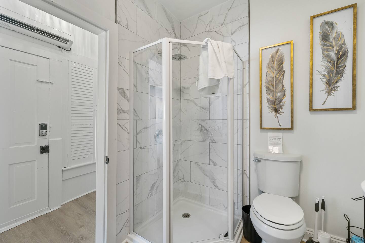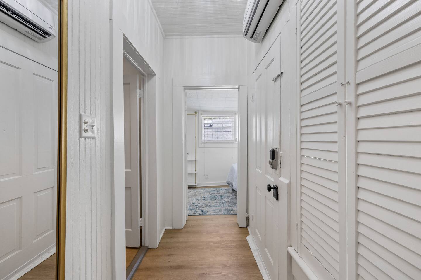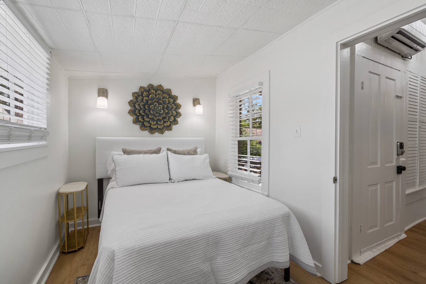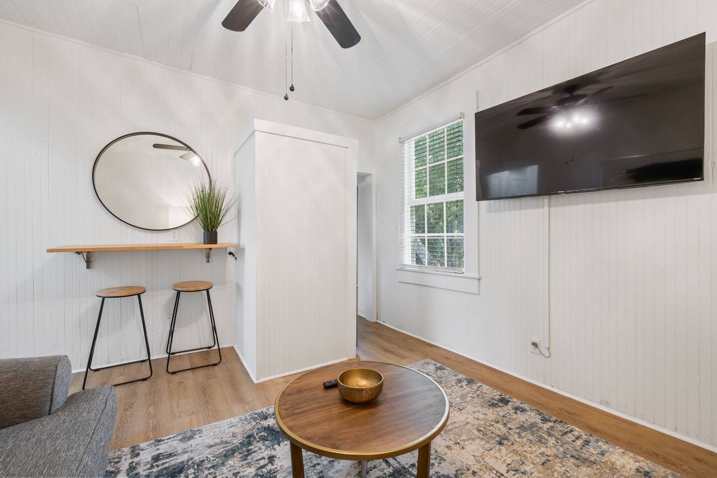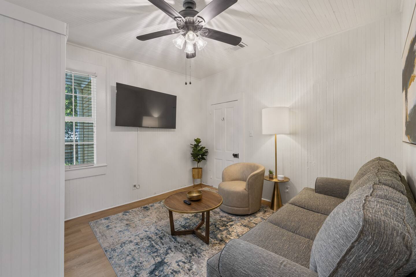 Still with the historic feel of 1899, this home still exudes its original character and charm. Hardwood floors throughout and a mix of antique and modern furniture make this a great spot to enjoy historic Mobile. Our location is just the best too! Downtown is just minutes away making your trip to Orange Beach, Gulf Shores and Pensacola beach about 1 hour and Dauphin Island just 45 min. But the best part? We're just a short 3-4 block walk to the Mardi Gras parade route. Here are some specific unit details that might help when planning your stay: Property features: ✓ Close By Parks and Walkable Neighborhood: Soak up the peaceful sounds of nature in Washington Square Park or walk to one of the local favorite restaurants in the area. ✓ A/C and Heating: No matter if it's winter or summer, the house will be at the right temperature with our minisplit heating and cooling system. ✓ Shared washer and Dryer on the property: For those who plan on booking for longer length stays, the washer and dryer will come in handy when it comes time to do your laundry. ✓ Free Parking: Off-street parking available for this unit - pull to the back of the driveway behind the gate for easy access to your unit. ✓ Covid-19 Compliant: Health, safety, and well-being of our guests are of utmost importance. For this reason, we have a professional cleaning service ensuring a thorough cleaning before you check-in. Living Room/Dining Room: (sleeps 2) • 1 Queen-size sofa sleeper • Comfy sitting chair • Bar area with seating for at least 2. • 65 inch smart TV with streaming services loaded • Gorgeous windows with natural lighting • Bedding located in a container under the bed in the bedroom Kitchen: • Full-size refrigerator • Microwave • Coffee Pot • Filtered Water Pitcher • Oven/stove combo • Pots & pans for the cooktop • Oil, salt and pepper • Complimentary quick breakfast (oatmeal and grits) • Complimentary coffee bar allowing you to brew yourself a warm cup of joe to start off with a gentle boost. • There are enough supplies in the kitchen for 4 people to stay (Cutting boards, spoons, knives, and spatulas, etc) If you’re not up for cooking, have peace of mind that a fine selection of dining options are within walking distance including the famous Callaghan's Irish Pub (GET THE BIG MIC) *check out our Guidebook for more suggestions* Bedroom (sleeps 2) • Full sized bed with memory foam mattress • Private Patio off of the bedroom - perfect for enjoying your morning tea or coffee • 55" Smart TV with streaming services loaded • Clothes storage including hangers • Iron and ironing board Bathroom: Located between the bedroom and living room, you'll be able to pamper yourself and end your day like a royalty with a refreshing shower in the custom built shower equipped with all the necessary toiletries: • Hair dryer • Toilet paper • Shampoo & Conditioner • Soap/Shower gel • Towels, Washcloths, and hand towels (even makeup removal wipes) Other (shared spaces) • Fire pit located in the backyard • Outdoor seating • There is a large historic front porch for everyone to share • Laundry room with washer and dryer PETS are NOT allowed at this location - if you have a Pet - reach out as we have other properties that are Pet friendly. All within 2-3 blocks from this location: Callaghan's Irish Pub (best BURGER ever - get the Big Mic) Washington Square Park The Oakleigh House Museum Hummingbird Way Oyster Bar Mardi Gras Parade Routes and MORE. OF NOTE: There is a flight of stairs to get to this unit. This unit is in a triplex building - NO inside spaces are shared, except the laundry room which is located through a door around the back of the house. If you have more than 4 people and would like to book more than one of these units at the same location - contact me and I'd be happy to accommodate you all. This is great spot for wedding guests and wedding parties. —-------------- SLEEPING SITUATION —------------------- One-story home (sleeps 4) Bedroom: Full Bed •Sleeps 2 Living Room 1: Queen Size Sofabed • Sleeps 2 • Bedding for extra bed located in a container under the bed in the bedroom • Pack and play available upon request We are open to longer term stays as well as a quick get away! Book now for a memorable stay in Mobile! Local Guests: Please message us before booking and let us know what brings you to our home. We may require a refundable deposit for local stays to help prevent parties.