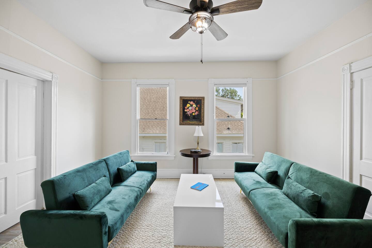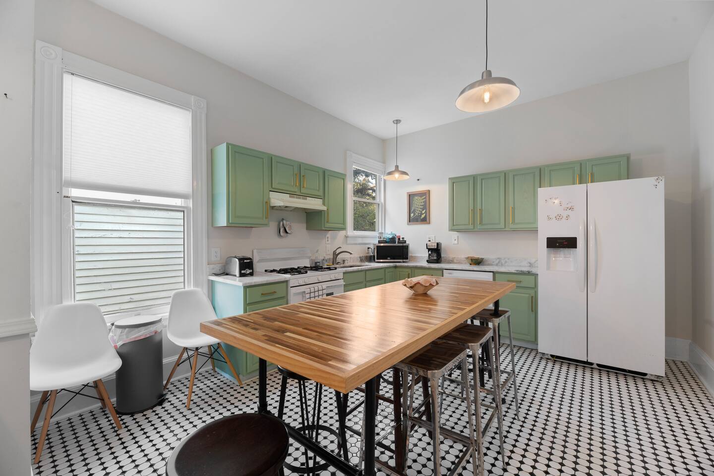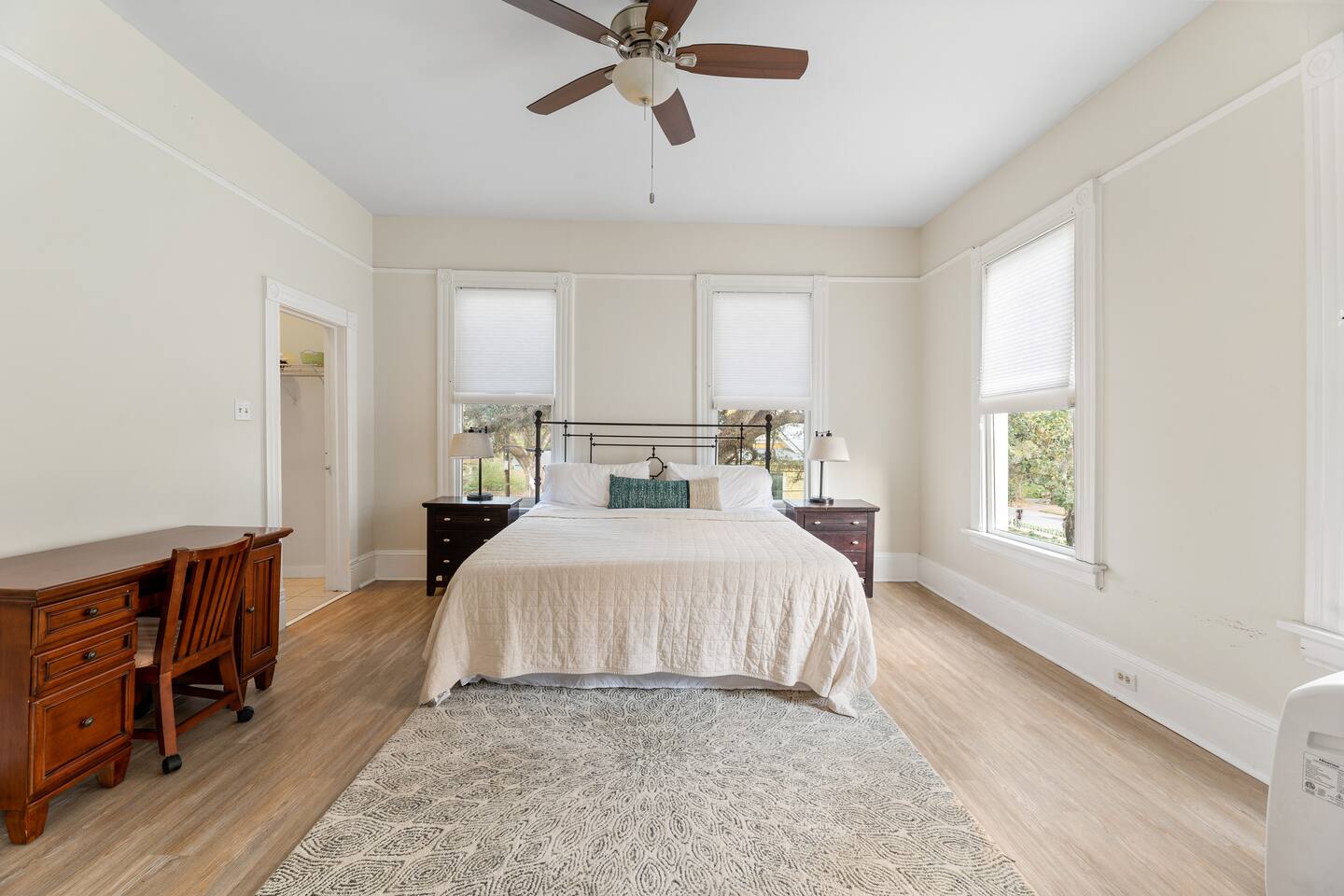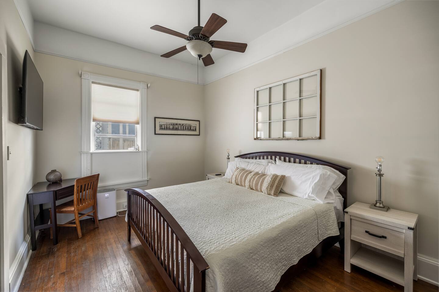Discover the charm and convenience of the King George Estate, a 3,600+ sq. ft. home in Mobile's historic district. A short walk to the Mardi Gras parade route, Washington Square Park, local restaurants, and museums. Perfect for weddings, conferences, or large groups or families traveling together, this spacious triplex sleeps up to 22 people with a mix of beds, futons, and cots. EV Charger on site, pet friendly, free wifi and more - you'll love the newly updated kitchen and bathrooms, complete with stylish and modern flooring throughout. Built in 1905, this home still exudes its original character and charm. All while located within walking distance of many historic attractions. Or stay home and enjoy the beautiful Mobile weather from the southern front porch, complete with a fire table and outdoor seating. You won't beat our location! Downtown is just minutes away and Orange Beach, Gulf Shores, Pensacola, and Dauphin Island are less than an hour drive! But the best part? We're just a short 3-4 block walk to the Mardi Gras parade route. Here are some specific unit details that might help when planning your stay: Property features: ✓ Close By Parks and Walkable Neighborhood: Soak up the peaceful sounds of nature in Washington Square Park or walk to one of the local favorite restaurants in the area. ✓ Central A/C and Heating: No matter if it's winter or summer, the house will be at the right temperature with our heating and cooling system. ✓ Washer and Dryer in every unit: For those who plan on booking for longer length stays, the washer and dryer will come in handy when it comes time to do your laundry. ✓ Free Parking: Off Street parking for 4 cars in the back of the house and street parking available directly in front of the house. ✓ Covid-19 Compliant: Health, safety, and well-being of our guests are of utmost importance. For this reason, we have a professional cleaning service ensuring a thorough cleaning before you check-in. This property is a triplex and booking this listing means you'll have access to the entire place. All units have private entrances, but are located under 1 roof. 2 units are downstairs and the third (and largest unit) is the entire upstairs. Here's the details: Living Room 1: • 2 couches (one converts to a full size sofa bed) • 65 inch TV Living Room 2: • Full-size sofa sleeper couch • 2 Twin cots (located in the primary bedroom closet) • 2 sitting chairs • Writing Desk • Large table with 6 chairs • 65 inch smart TV with streaming services loaded Living Room 3: • 2 Futon Sofas • 2 sitting chairs • 65 inch smart TV with streaming services loaded Kitchens: All 3 kitchens include the appliances and amenities to make you feel right at home • Full-size refrigerator • Microwave • Dishwasher • Drip Coffee Pot • Filtered Water Pitcher • Gas oven/stove combo • Pots & pans for the cooktop • Oil, salt and pepper • Complimentary quick breakfast (oatmeal and grits) • Complimentary coffee bar allowing you to brew yourself a warm cup of joe to start off with a gentle boost. • There are enough supplies in the kitchen for everyone (Cutting boards, spoons, knives, plates, spatulas, etc) If you’re not up for cooking, have peace of mind that a fine selection of dining options are within walking distance including the famous Callaghan's Irish Pub (GET THE BIG MIC) *check out our Guidebook for more suggestions* Living/Dining Room (Unit 1) Open concept with the living room with dining for 6 and lounging for 2. • 6 seater table • 6 dining room chairs • 2 chairs that convert to 2 twin beds OF NOTE: there are VERY old pocket doors in the cased opening - please don't try to open them as they are very difficult to get back in the "pocket" :) •shared space with the living room. Bedroom 1: primary bedroom unit 1: • KING sized bed with memory foam mattress • full bathroom attached • Full size dresser for all your clothes • LARGE walk-in closet • 55 inch TV with streaming services Bedroom 2: Primary Bedroom Unit 2: • KING sized bed with memory foam mattress • Ensuite bathroom • 2 twin cots are located in the closet • 55" Smart TV with streaming services • Clothes storage including drawers and hangers Bedroom 3: Primary Bedroom Unit 3 • KING sized bed with memory foam mattress • Ensuite bathroom • 55" Smart TV with streaming services • Clothes storage including drawers and hangers Bedroom 4: Bedroom 2 of Unit 3: • 1 Queen sized bed with memory foam mattress • 2 Full sized beds with memory foam mattresses • Bathroom and Laundry room attached • 55" Smart TV with streaming services • Clothes storage including drawers and hangers **extra bedding for futons are located in this bedroom closet** Bathrooms: There are 4 Full bathrooms all with the same amenities in each: • Hair dryer • Toilet paper • Shampoo & Conditioner • Soap/Shower gel • Towels, Washcloths, and hand towels (even makeup removal wipes) Bathroom 1: Unit 1: • Shower/Tub Combo Bathroom 2: Unit 2: • Shower Only Bathroom 3: Unit 3 • Shower/Tub Combo Bathroom 4: Unit 3 • Shower/Tub Combo Other (shared spaces) • Fire table located on the front porch (propane tank provided, but not refilled) • Outdoor seating • Charcoal Grill • There is a large historic front porch • Full size washers and dryers in each unit All within 2-3 blocks from this location: Callaghan's Irish Pub (best BURGER ever - get the Big Mic) Washington Square Park The Oakleigh House Museum Hummingbird Way Oyster Bar Mardi Gras Parade Routes and MORE. This is great spot for wedding guests and wedding parties. ——————-sleeping situation——————- Bedroom 1 (unit 1): 2 - King Bed (2) Living Room (unit 1): 4 - Full size sofa bed (2) - Twin convertible chairs (2) Bedroom 2 (unit 2): 2 - King Bed (2) Living Room (unit 2): 4 - Full size sofa bed (2) - Twin cots (2) Bedroom 3 (unit 3): 2 - King Bed (2) Bedroom 4 (unit 3): 6 - Queen bed (2)