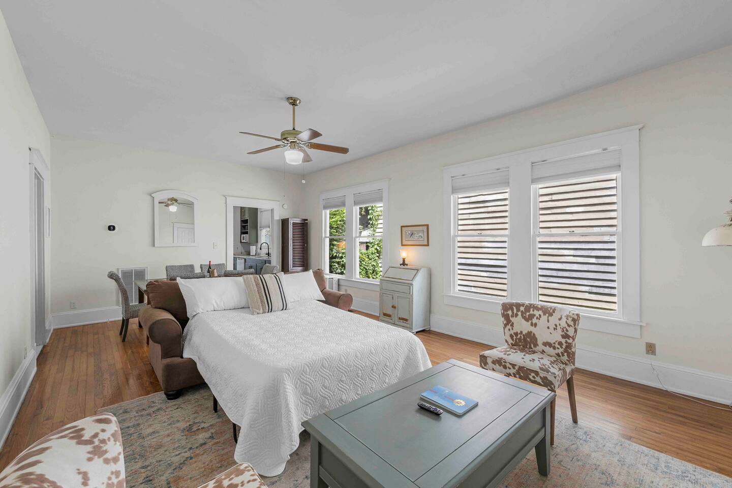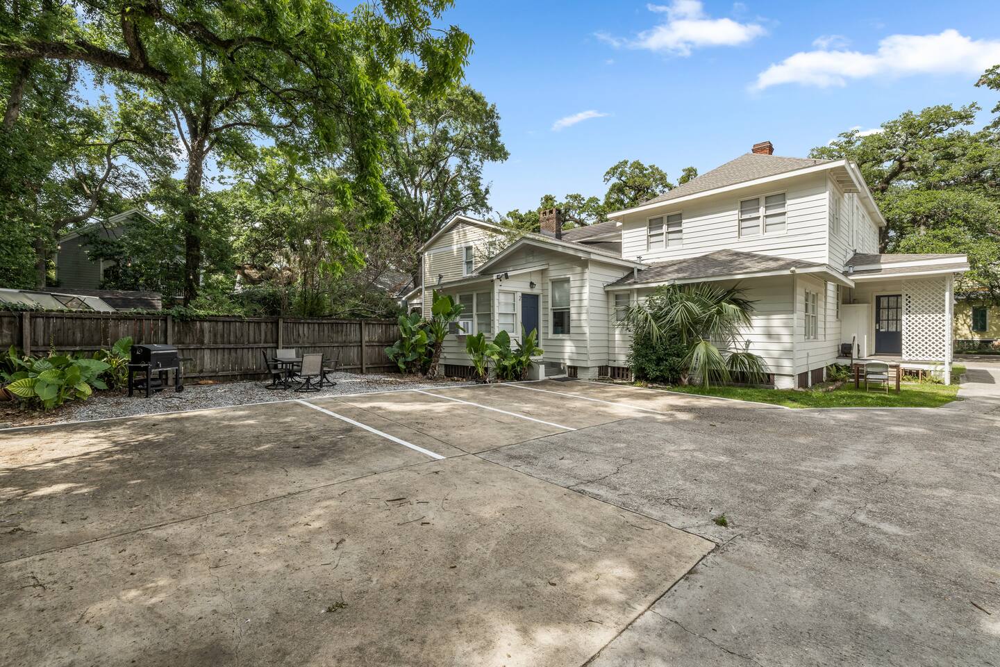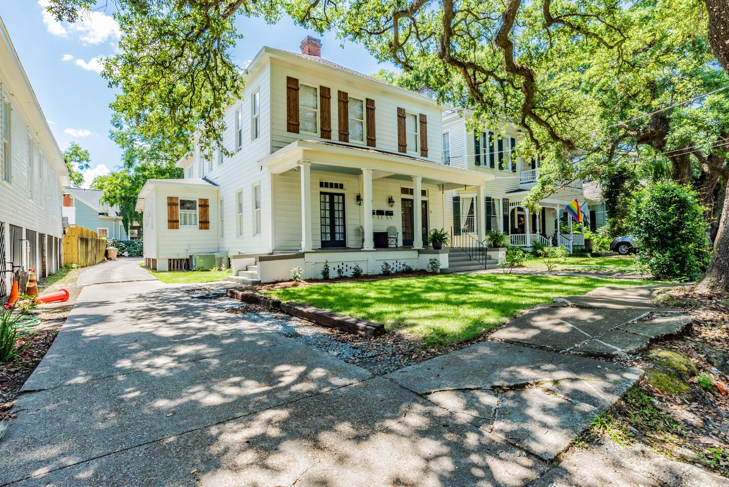 Our neighborhood is very walkable, and you'll find it easy to explore the charming historic homes and nearby attractions on foot. For those who prefer to ride, Uber and other ride-sharing services are readily available and offer a convenient way to get around town. There is even a golf cart service provided (see the laminated sheets on each fridge) so you can get around to the neighborhood restaurants and bars. We have parking available for 4 cars on the property, and street parking is also widely available and acceptable. We do kindly ask that you respect our neighbors and refrain from parking in front of their homes, particularly the Yellow House next door, as they rely on street parking for their vehicles. From here, you'll be just minutes away from a plethora of local attractions like Washington Square Park, the Oakleigh House Museum, the bustling downtown district, great restaurants and bars (The Ice Box and Callaghan's Irish Pub) or if you're interested in a fancier dinner, try Hummingbird Way Oyster bar! We're just a few blocks from the parade route during Mardi Gras Season. A short 45-1 hour drive to multiple beaches (Orange Beach, Pensacola, Fort Morgan, Gulf Shores, and Dauphin Island) and a 30-45 min drive to Fairhope!