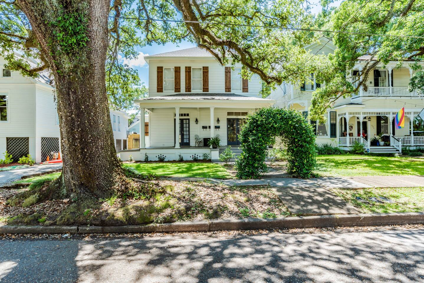 Our property is nestled in the heart of the picturesque and historic Oakleigh District, known for its beautifully preserved homes and rich cultural heritage. Our charming street is one of the most sought-after in Mobile, boasting stunning architecture and a vibrant community. From here, you'll have easy access to the area's top attractions, including Washington Square Park, the Oakleigh House Museum, and the bustling downtown district. Stroll through the tree-lined streets and soak up the ambiance of this unique and captivating neighborhood. You'll quickly discover why our location is the perfect starting point for exploring all that Mobile has to offer. We have also hosted multiple wedding parties and they've found its a great space to enjoy before the big day!