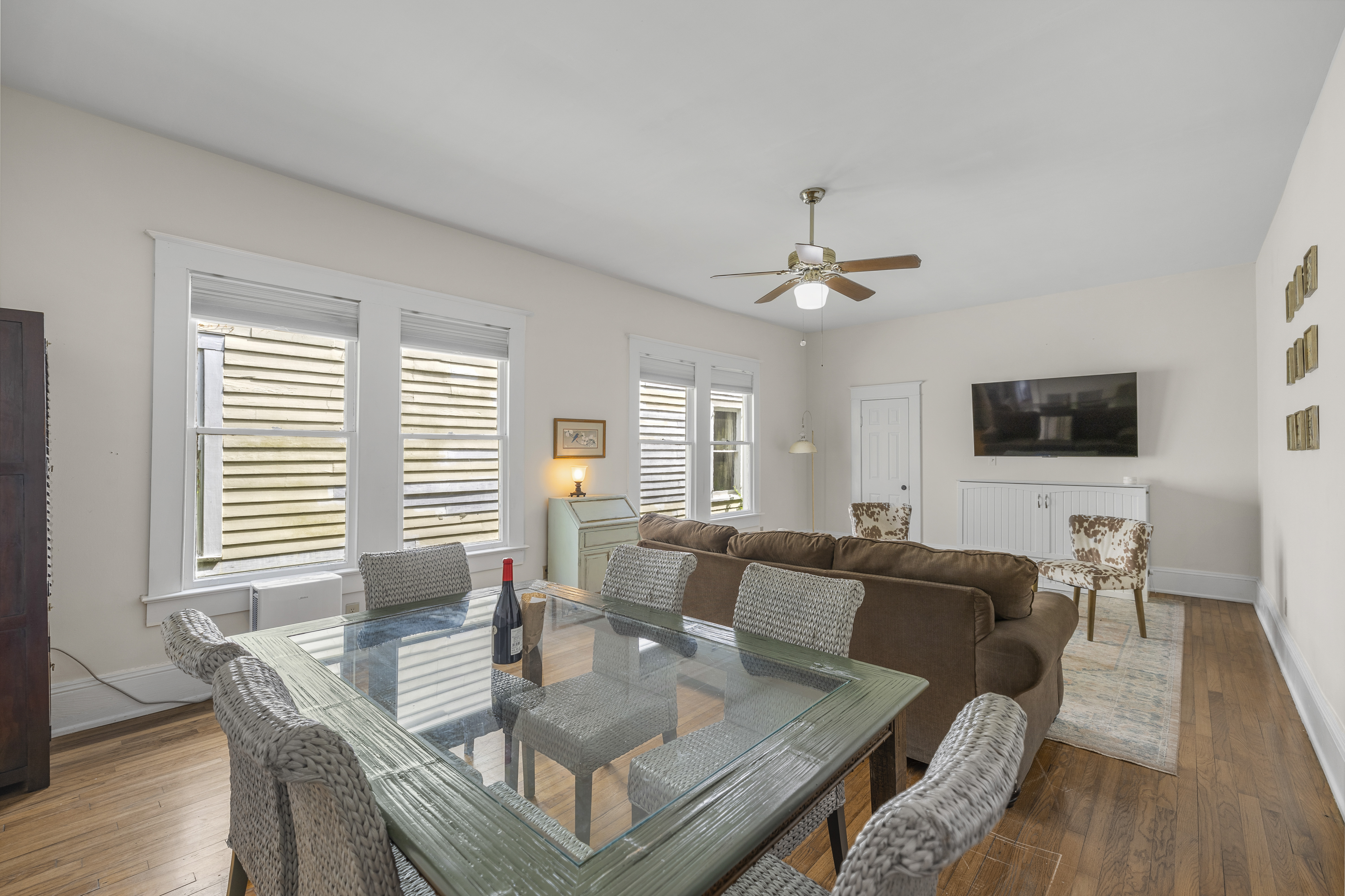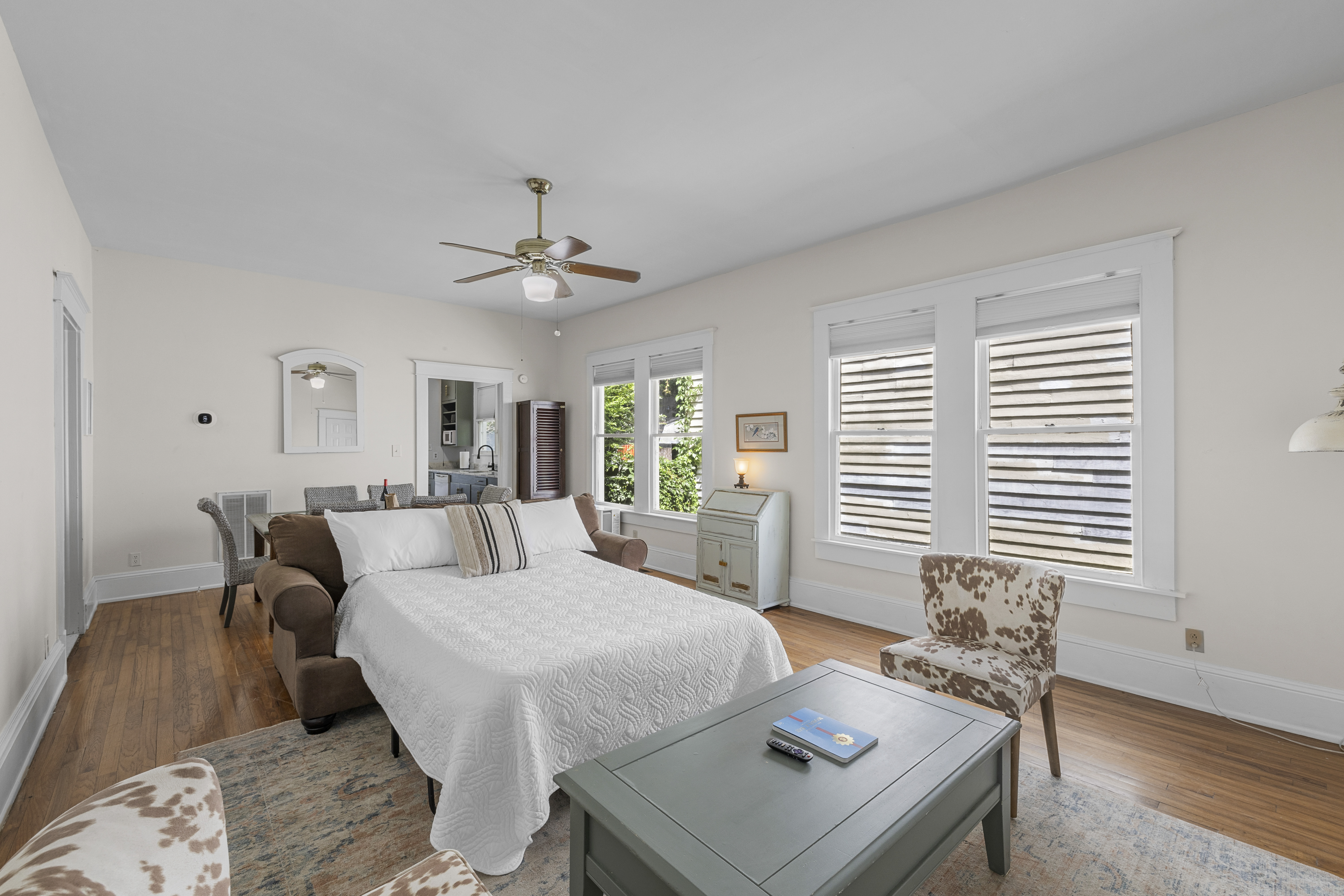 Discover the charm of a historic 115-year-old home in Mobile, Alabama, with modern updates and a prime location. This spacious unit features 1 bedroom, 3 beds, and 1 bath, comfortably accommodating up to 6 guests. Enjoy amenities like free WiFi, free EV charging, equipped kitchen, and an outdoor grill. Just steps from the Mardi Gras Parade Route, Washington Square, local dining, and a short drive to Gulf Shores and Orange Beach. Perfect for families and pet-friendly stays in Mobile! We can't wait for you to create up some happy memories in our space! Here are some unit details that might help when planning your stay: Property features: ✓ Washer and Dryer in the Unit: For those who plan on booking for longer length stays, the washer and dryer will come in handy when it comes time to do your laundry. ✓ BRAND NEW Central A/C and Heating: No matter if it's winter or summer, the house will always be at the right temperature with our heating and cooling system as well as back up AC window units for those extra hot Mobile summer days. ✓ Close By Parks and Walkable Neighborhood: Soak up the peaceful sounds of nature in Washington Square Park or walk to one of the local favorite restaurants in the area. ✓ Free Parking: You’ll have off-street parking available on the premises to safely park your vehicle. There is enough spots for 1 car on the parking pad in the back. Please use street parking for any other cars. ✓ EV Charging: Level 2 EV charger located in the back parking area. Complimentary for our guests. ✓ Covid-19 Compliant: Health, safety, and well-being of our guests are of utmost importance. For this reason, we have a professional cleaning service ensuring a thorough cleaning before you check-in. — SLEEPING SITUATION — Comfortably sleeps 6 guests: - Bedroom: 2 - Living Room: 2 - Dining/Living Room: 2 If you have more than this number - don't hesitate to reach out as we would love to try to accommodate you (we have 2 more listings on this property too and/or the whole building can be rented as a separate listing too) Living Room/Dining Room: (sleeps 4) • Full-size sofa sleeper couch • Murphy Bed (queen bed)- reach out to us for directions on opening the murphy bed • 2 sitting chairs • Writing Desk • Large table with 6 chairs • 65 inch smart TV with streaming services loaded • tons of windows for natural lighting (light blocking shades on each) Kitchen: • Full-size refrigerator • Microwave • Dishwasher • Coffee Pots • Filtered Water Pitcher • Gas oven/stove combo • Pots & pans for the cooktop • Oil, salt and pepper • Complimentary quick breakfast (oatmeal and grits) • Complimentary coffee bar allowing you to brew yourself a warm cup of joe to start off with a gentle boost. • There are enough supplies in the kitchen for 6 people to stay (Cutting boards, spoons, knives, and spatulas, etc) If you’re not up for cooking, have peace of mind that a fine selection of dining options are within walking distance including the famous Callaghan's Irish Pub (GET THE BIG MIC) *check out our Guidebook for more suggestions* Bedroom (sleeps 2) There is 1 well sized bedroom with the bathroom attached • Primary bedroom: KING sized bed with memory foam mattress • 55" Smart TV with streaming services loaded • Clothes storage including drawers and hangers Bathroom: Located directly off the bedroom, you'll be able to pamper yourself and end your day like a royalty with a refreshing shower in the newly renovated bathroom equipped with all the necessary toiletries: • Hair dryer • Toilet paper • Shampoo & Conditioner • Soap/Shower gel • Towels, Washcloths, and hand towels (even makeup removal wipes) Other • Charcoal Grill is available (shared among all building guests) • Fire pit/table located between the chairs on the front porch (propane is NOT provided by us - feel free to exchange the tank if needed and enjoy) • Outdoor seating and dining table (shared among all building guests) • There is a large historic front porch (which is shared by all the guests of the house). We do allow pets at this location, but because of the historic nature of this property we'd ask if you’d contact us about specific pet requests you might have. All within 3-4 blocks from this location: Callaghan's Irish Pub (best BURGER ever - get the Big Mic) Washington Square Park The Oakleigh House Museum Hummingbird Way Oyster Bar Mardi Gras Parade Routes and MORE. OF NOTE: There are 3 steps to get inside, but once inside there are no steps or stairs. This unit is in a triplex building - NO inside spaces are shared. If you have more than 6 people and would like to book more than one of these units at the same location - contact me and I'd be happy to accommodate you all. This is great spot for wedding guests and parties. Local Guests: Please message us before booking and let us know what brings you to our home. We may require a refundable deposit for local stays to help prevent parties.