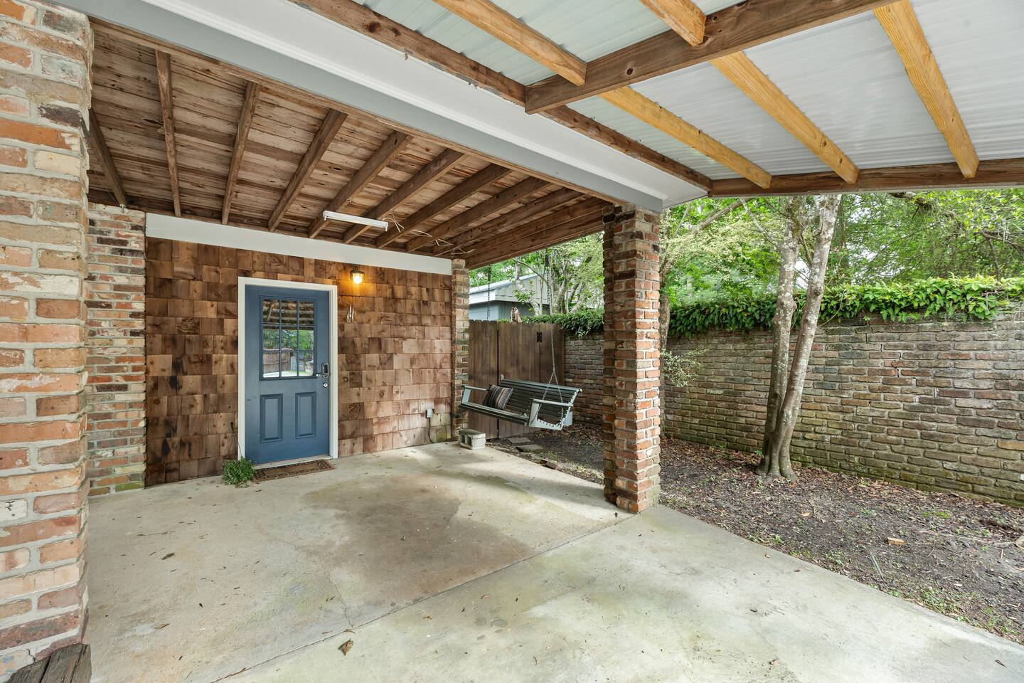 There is a private patio available off of the kitchen. Private covered carport for parking one car (or 2 with one behind the other).