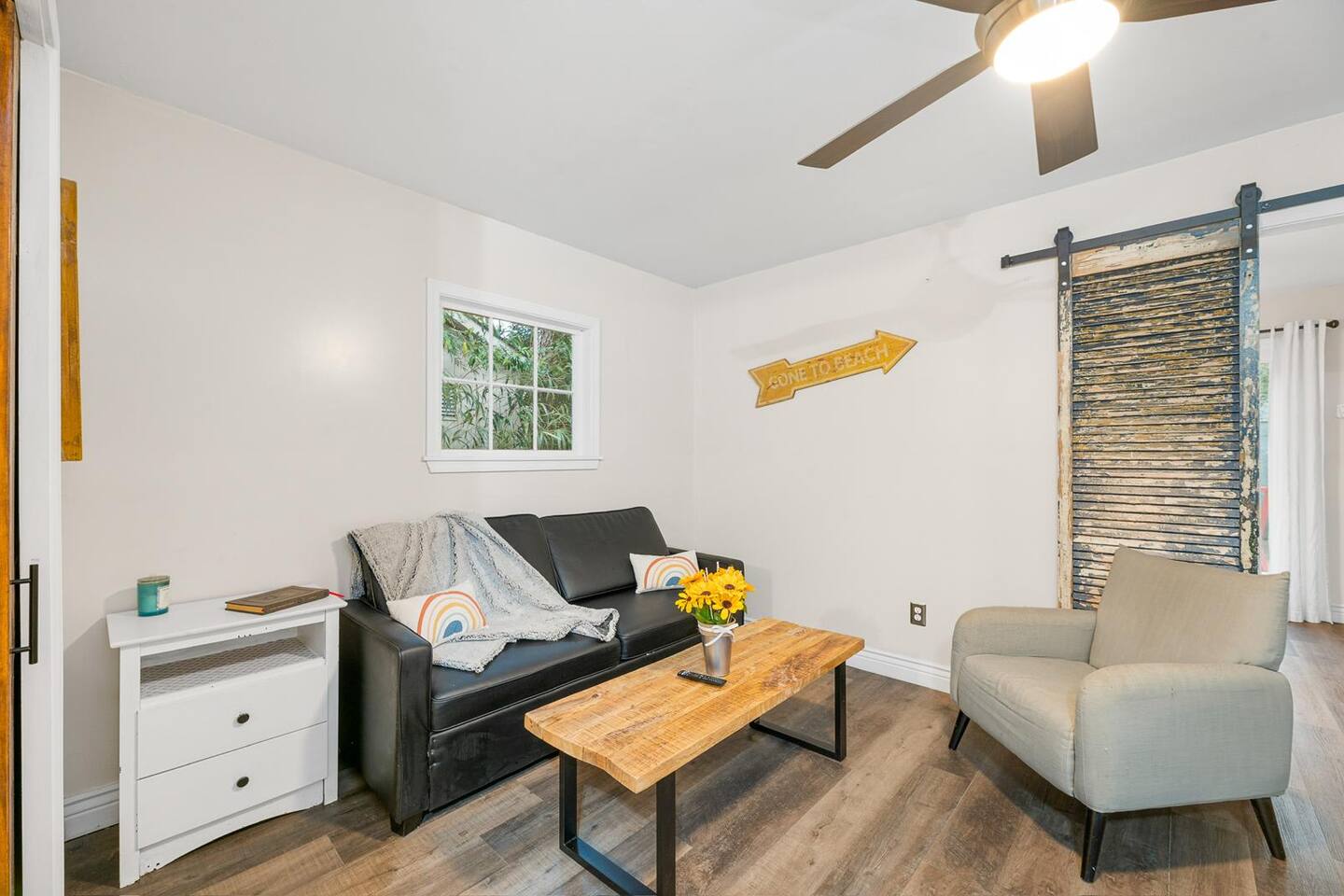 It's very simple to get to the house using your GPS. It is located at the end of the driveway which is on the side of the house and it's marked by a peach/salmon door! Shouldn't be too difficult to find. You're free to park on the gravel parking pad in the spot farthest from the metal/wood fence directly in front of the apartment, but do not block the driveway! Again, please use the parking spot to the left when facing the peach door!