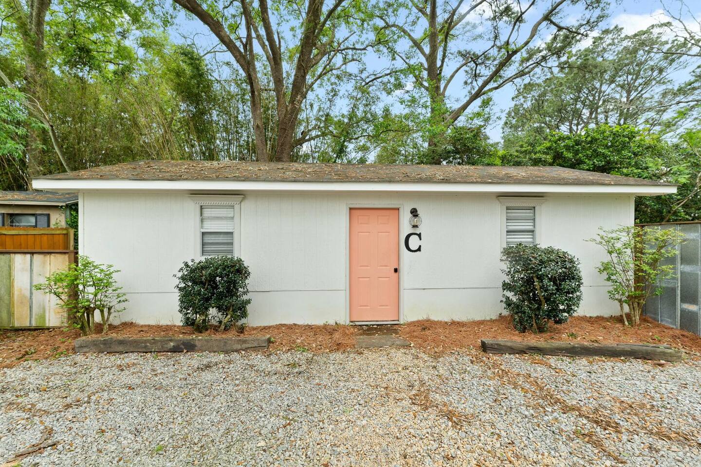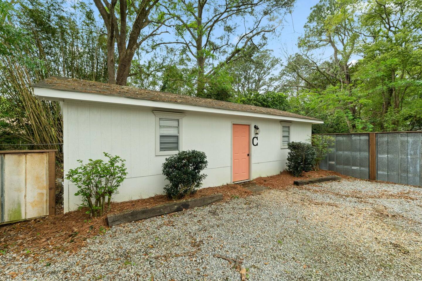Located in Midtown Mobile - just minutes from Downtown and the interstate. The guesthouse is perfect for a getaway or a longer term stay. This guesthouse has 1 bedroom, 1 bathroom, a fully equipped kitchen, in unit washer and dryer, a living room with a comfy sofa bed and a private patio. You're sure to enjoy your time here! Here are some specific unit details that might help when planning your stay: Property features: Keep reading to learn more about our extra benefits and start planning your trip to Mobile, AL today! ✓ Covid-19 Compliant: Health, safety, and well-being of our guests are of utmost importance. For this reason, we have a professional cleaning service ensuring a thorough cleaning before you check-in (available during your stay as well for an extra charge) ✓ Washer and Dryer in Unit: For those who plan on booking for longer length stays, the washer and dryer will come in handy when it comes time to do your laundry. ✓ BRAND NEW Minsplit A/C and Heating: No matter if it's winter or summer, the house will always be at the right temperature with our heating and cooling system. ✓ Private Outdoor Space: Soak up the peaceful sounds of nature in the fenced private patio. ✓ Free Parking: You’ll have plenty of parking available on the premises to safely park your vehicle. There are enough spots for at least 2 cars on the gravel parking pad in the front of the guesthouse. THE SPACE: LIVING ROOM: Relax and unwind in the living area, featuring a cozy sofa bed perfect for quality time and movie nights. • 1 sitting chair • Smart TV *Bedding for extra bed located in the laundry area on the shelf* *Pack and play available on request - please communicate with us about this before you check in* DINING ROOM: Open concept living room/dining room and kitchen area • 4 seater table • 4 dining room chairs KITCHEN: We can't wait for you to cook up some happy memories in our lovely kitchen! You’ll surely bring your culinary pursuits to life using our: • Full-size refrigerator • Microwave • Coffee Pot • Filtered Water Pitcher • oven/stove combo • Pots & pans for the cooktop • Oil, salt and pepper • Complimentary quick breakfast (oatmeal and grits) • Complimentary coffee bar allowing you to brew yourself a warm cup of joe to start off with a gentle boost. - There are enough supplies in the kitchen for 4 people to stay (Cutting boards, spoons, knives, plates, and spatulas, etc) If you’re not up for cooking, have peace of mind that a fine selection of dining options are within a 3-5-minute drive or Uber away – including Southern, seafood, and steak restaurants, and as well as some local fast food favorites (FOOSACKLY'S Chicken) BEDROOM: Bedroom: Queen Bed • Sleeps 2 • Detached full bathroom • Attached private patio BATHROOM: Pamper yourself and end your day like a royalty with a refreshing shower equipped with all the necessary toiletries: • Hair dryer • Toilet paper • Shampoo & Conditioner • Soap/Shower gel • Towels, Washcloths, and hand towels (even makeup removal wipes) LAUNDRY AREA: • large stackable washer and dryer located in the bathroom • iron and ironing board in here too BACK PATIO • Good size back patio with cute furniture and string lights • located directly off of the bedroom! • access to the grassy backyard area of Unit A/B is available if the unit is vacant —---------- SLEEPING SITUATION —------------ This place comfortably sleeps 4 guests: - Bedroom: 2 - Living Room 1: 2 - if you have more than this number - don't hesitate to reach out as we would love to try to accommodate you (the main house is also available for guests and between both unit A and B - up to 20 extra people can sleep) We are open to longer term stays as well as a quick get away! Book now for a memorable stay in Mobile! Local Guests: Please message us before booking and let us know what brings you to our home. We may require a refundable deposit for local stays to help prevent parties.