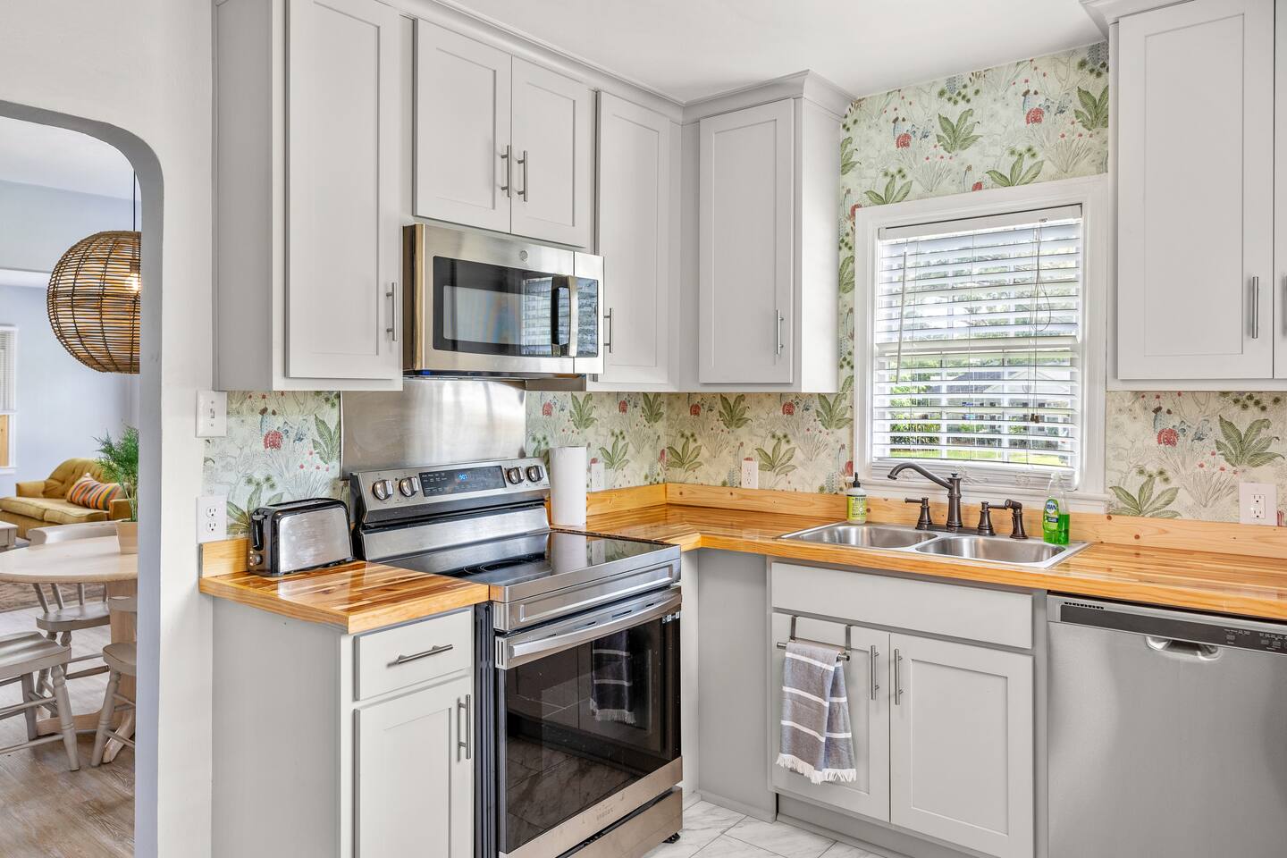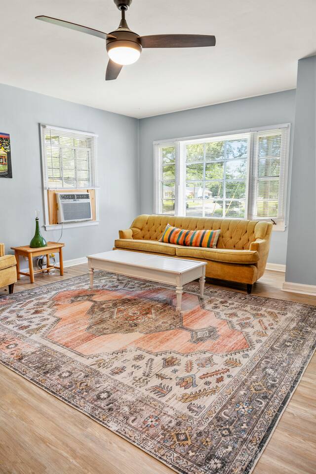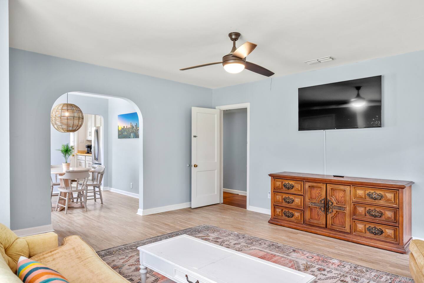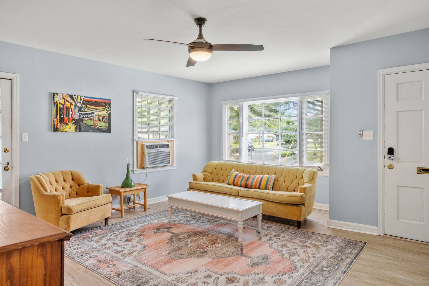 Charming Midtown Retreat – Comfort & Convenience! Perfect for visitors to Mobile, this centrally located Midtown stay offers easy access to the interstate, local shops, and great eateries. Relax in a queen-size memory foam bed with a bathroom close by. The open-concept living, dining and kitchen area provides plenty of space to gather. Enjoy the large backyard (partially fenced), great for pets or kids. Here are more property details for your trip planning: Property features: ✓ Washer and Dryer in the Unit: For those who plan on booking for longer length stays, the washer and dryer will come in handy when it comes time to do your laundry. ✓ BRAND NEW A/C and Heating: No matter if it's winter or summer, the house will always be at the right temperature with our heating and cooling system as well as back up AC portable unit for those extra hot Mobile summer days. ✓ Close By Parks and Walkable Neighborhood: Soak up the peaceful sounds of nature with this extremely walkable neighborhood or walk to one of the local favorite restaurants in the area. ✓ Free Parking: You’ll have off-street parking available on the premises to safely park your vehicle. There is enough spots for 1 -2 cars on the parking pad in the front. Please use street parking for any other cars. ✓ Private Side Patio: You'll have a great time with your morning coffee or evening unwind on the side porch located right off of the living room. ✓ Covid-19 Compliant: Health, safety, and well-being of our guests are of utmost importance. For this reason, we have a professional cleaning service ensuring a thorough cleaning before you check-in. Living Room: • Full-size sofa • sitting chairs • 65 inch smart TV with streaming services loaded • tons of windows for natural lighting (light blocking curtains on each) Dining Room: • Desk and chair • Dining table with 4 chairs • windows for natural light (light blocking curtains on each) Kitchen: • Full-size refrigerator • Microwave • Dishwasher • Coffee Pot or Keurig • Filtered Water Pitcher • Oven/stove combo • Pots & pans for the cooktop • Oil, salt and pepper • Complimentary quick breakfast (oatmeal and grits) • Complimentary coffee bar allowing you to brew yourself a warm cup of joe to start off with a gentle boost. • There are enough supplies in the kitchen for 6 people to stay (Cutting boards, spoons, knives, and spatulas, etc) If you’re not up for cooking, have peace of mind that a fine selection of Mobile Favorite dining options less than 2 miles away *check out our Guidebook for more suggestions* Bedroom (sleeps 2) There is 1 well sized bedroom with the bathroom nearby • Primary bedroom: Queen sized bed with memory foam mattress • 55" Smart TV with streaming services loaded • Clothes storage including drawers and hangers Bathroom: Located down the hall and next to the bedroom, you'll be able to pamper yourself and end your day with a refreshing bath or shower • Tub/Shower Combo • Hair dryer • Toilet paper • Shampoo & Conditioner • Soap/Shower gel • Towels, Washcloths, and hand towels (even makeup removal wipes) Other (shared spaces) • Propane Grill is available on side porch (propane is not supplied, but you're welcome to exchange the tank) • Outdoor seating on side porch We do allow pets at this location, but we'd ask if you’d contact us before bringing them. OF NOTE: There are 3 steps to get inside, but once inside there are no steps or stairs. This unit is in a duplex building - NO inside spaces are shared. If you have more than 2 people and would like to book the other unit at the same location - contact me and I'd be happy to accommodate you if it's available. —--------------- SLEEPING SITUATION —-------------------- One-story home (sleeps 2) Bedroom: Queen Bed •Sleeps 2 Extras: Pack ‘n Play available on request. Local Guests: Please message us before booking and let us know what brings you to our home. We may require a refundable deposit for local stays to help prevent parties.