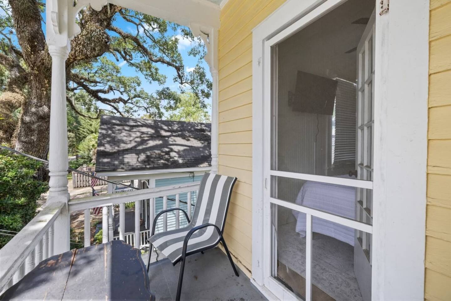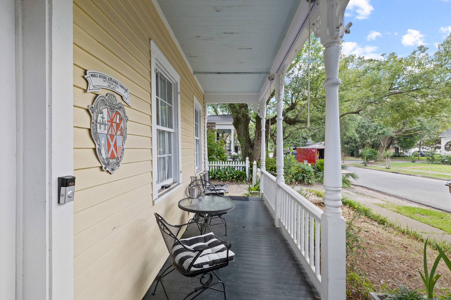 Still with the historic feel of 1899, this home still exudes its original character and charm. Hardwood floors throughout and a mix of antique and modern furniture make this a great spot to enjoy historic Mobile. Our location is the best too! Downtown is just minutes away making your trip to Orange Beach, Gulf Shores and Pensacola beach about 1 hour and Dauphin Island just 45 min. But the best part? We're just a short 3-4 block walk to the Mardi Gras parade route. Here are some specific unit details that might help when planning your stay: Property features: ✓ Close By Parks and Walkable Neighborhood: Soak up the peaceful sounds of nature in Washington Square Park or walk to one of the local favorite restaurants in the area. ✓ Central A/C and Heating: No matter if it's winter or summer, the house will be at the right temperature with our heating and cooling system. ✓ Shared washer and Dryer on the property: For those who plan on booking for longer length stays, the washer and dryer will come in handy when it comes time to do your laundry. ✓ Free Parking: You’ll have street parking available directly in front of the house. ✓ Covid-19 Compliant: Health, safety, and well-being of our guests are of utmost importance. For this reason, we have a professional cleaning service ensuring a thorough cleaning before you check-in. Living Room: (sleeps 2) • 2 Couches including 1 Queen-size sofa sleeper • table with 2 chairs • 65 inch smart TV with streaming services loaded • Gorgeous windows with natural lighting • Bedding located in a container under the bed in the bedroom Kitchen: • Full-size refrigerator • Microwave • Coffee Pot • Filtered Water Pitcher • Oven/stove combo • Pots & pans for the cooktop • Oil, salt and pepper • Complimentary coffee bar allowing you to brew yourself a warm cup of joe to start off with a gentle boost. • There are enough supplies in the kitchen for 4 people to stay (Cutting boards, spoons, knives, and spatulas, etc) If you’re not up for cooking, have peace of mind that a fine selection of dining options are within walking distance including the famous Callaghan's Irish Pub (GET THE BIG MIC) *check out our Guidebook for more suggestions* Bedroom (sleeps 2) • Full sized bed with memory foam mattress • Private Balcony off of the bedroom - perfect for enjoying your morning tea or coffee • Ensuite bathroom attached • 55" Smart TV with streaming services loaded • Clothes storage including hangers • Iron and ironing board Bathroom: Located directly off the bedroom, you'll be able to pamper yourself and end your day like a royalty with a refreshing shower in the newly custom built shower equipped with all the necessary toiletries: • Hair dryer • Toilet paper • Shampoo & Conditioner • Soap/Shower gel • Towels, Washcloths, and hand towels (even makeup removal wipes) Office: • desk and chair with gorgeous natural light pouring in at the top of the stairs Other (shared spaces) • Fire pit located in the backyard • Outdoor seating • There is a large historic front porch for everyone to share • Laundry room with washer and dryer PETS are NOT allowed at this location - if you have a Pet - reach out as we have other properties that are Pet friendly. All within 2-3 blocks from this location: Callaghan's Irish Pub (best BURGER ever - get the Big Mic) Washington Square Park The Oakleigh House Museum Hummingbird Way Oyster Bar Mardi Gras Parade Routes and MORE. OF NOTE: There is a flight of stairs to get to this unit. This unit is in a triplex building - NO inside spaces are shared, except the laundry room which is located through a door around the back of the house. If you have more than 4 people and would like to book more than one of these units at the same location - contact me and I'd be happy to accommodate you all. This is great spot for wedding guests and wedding parties. —-------------- SLEEPING SITUATION —------------------- One-story home (sleeps 4) Bedroom: Full Bed •Sleeps 2 • En-suite full bathroom Living Room 1: Queen Size Sofabed • Sleeps 2 • Bedding for all extra beds located in a container under the bed in the bedroom • Pack and play available upon request We are open to longer term stays as well as a quick get away! Book now for a memorable stay in Mobile! Local Guests: Please message us before booking and let us know what brings you to our home. We may require a refundable deposit for local stays to help prevent parties.