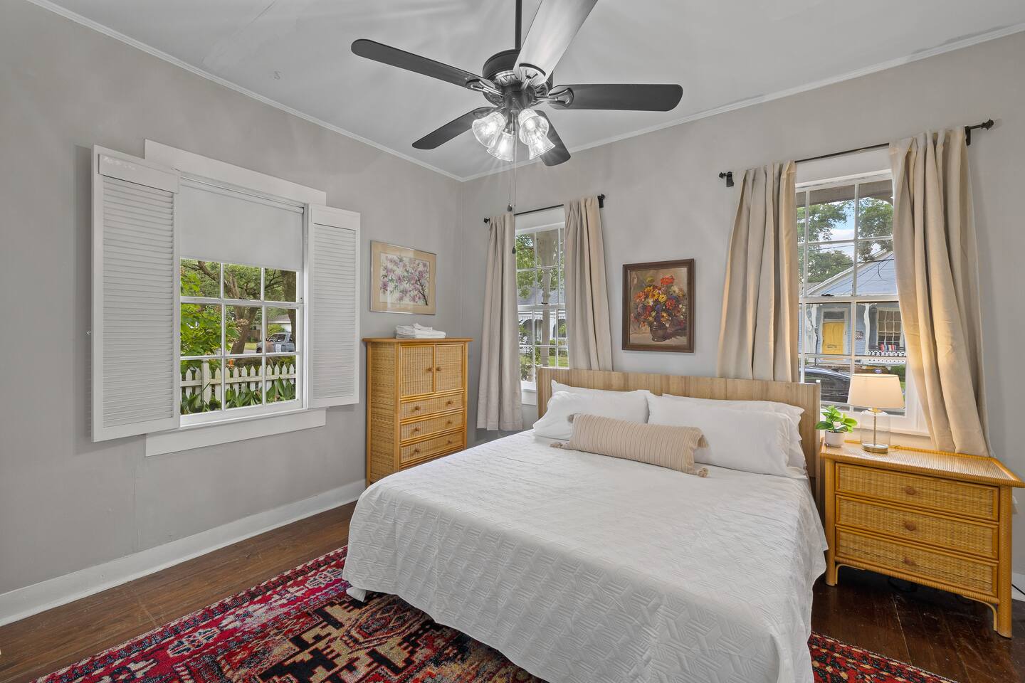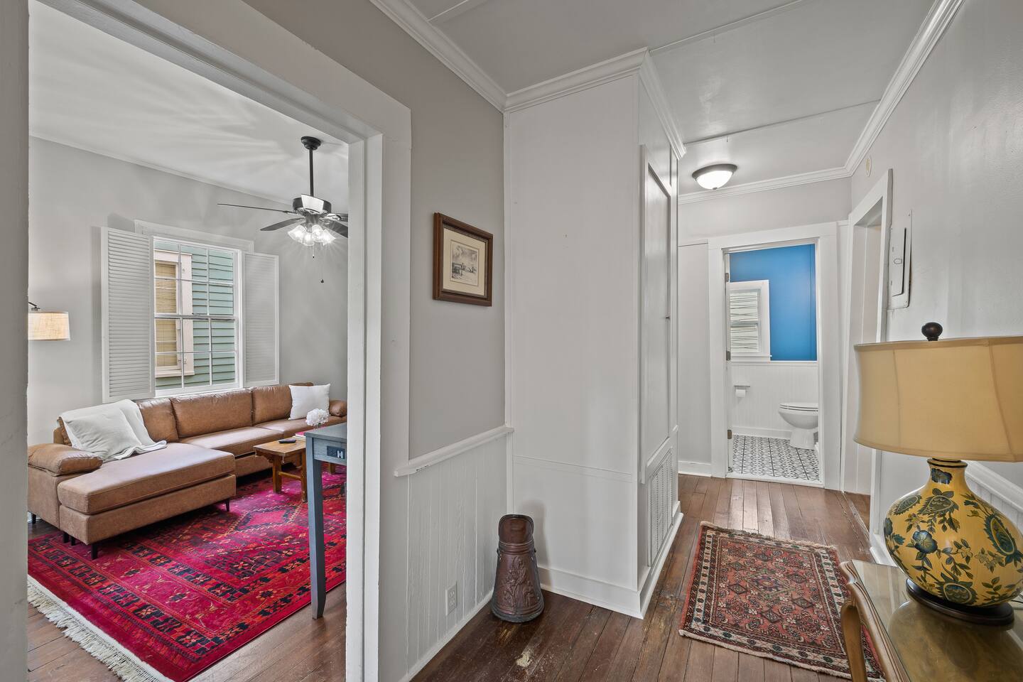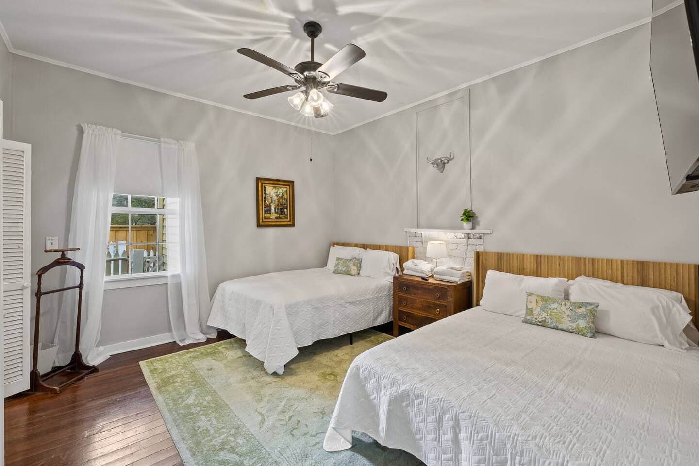 Still with the historic feel of 1899, this home still exudes its original character and charm. Hardwood floors throughout and a mix of antique and modern furniture make this a great spot to enjoy historic Mobile. Our location is just the best too! Downtown is just minutes away making your trip to Orange Beach, Gulf Shores and Pensacola beach about 1 hour and Dauphin Island just 45 min. But the best part? We're just a short 3-4 block walk to the Mardi Gras parade route. Here are some specific unit details that might help when planning your stay: Property features: ✓ Close By Parks and Walkable Neighborhood: Soak up the peaceful sounds of nature in Washington Square Park or walk to one of the local favorite restaurants in the area. ✓ Central A/C and Heating: No matter if it's winter or summer, the house will be at the right temperature with our heating and cooling system. ✓ Shared washer and Dryer on the property: For those who plan on booking for longer length stays, the washer and dryer will come in handy when it comes time to do your laundry. ✓ Free Parking: Street parking available directly in front of the front door to the house. ✓ Covid-19 Compliant: Health, safety, and well-being of our guests are of utmost importance. For this reason, we have a professional cleaning service ensuring a thorough cleaning before you check-in. Living Room Open Concept Living Room/Dining Room/Kitchen for enjoying everyone in the space. • Large Sectional Sofa • Rocking chair • Bar Table with seats • 65 inch smart TV with streaming services loaded • Gorgeous windows with natural lighting Kitchen: • Bar Table with seats • Full-size refrigerator • Microwave • Coffee Pot • Filtered Water Pitcher • Oven/stove combo • Pots & pans for the cooktop • Oil, salt and pepper • Complimentary coffee bar allowing you to brew yourself a warm cup of joe to start off with a gentle boost. • There are enough supplies in the kitchen for 8 people to stay (Cutting boards, spoons, knives, and spatulas, etc) If you’re not up for cooking, have peace of mind that a fine selection of dining options are within walking distance including the famous Callaghan's Irish Pub (GET THE BIG MIC) *check out our Guidebook for more suggestions* Bedroom One (sleeps 2) • King sized bed with memory foam mattress • Close to the front porch - perfect for enjoying your morning tea or coffee • 55" Smart TV with streaming services loaded • Double closets and clothes storage including hangers Bedroom Two (sleeps 6-8) • 2 Queen sized beds with memory foam mattresses • 2 Twin cots with all bedding • Large walk in closet - that could easily fit 1 of the twin cot beds (all extra bedding and cots located here) • 55" Smart TV with streaming services loaded • Iron and ironing board Bathroom: Located down the hall for easy access to both bedrooms, you'll be able to enjoy a shower or bath • Shower/Tub Combo • Hair dryer • Toilet paper • Shampoo & Conditioner • Soap/Shower gel • Towels, Washcloths, and hand towels (even makeup removal wipes) Other (shared spaces) • Fire pit located in the backyard • Outdoor seating • There is a large historic front porch for everyone to share • Laundry room with washer and dryer PETS are NOT allowed at this location - if you have a Pet - reach out as we have other properties that are Pet friendly. All within 2-3 blocks from this location: Callaghan's Irish Pub (best BURGER ever - get the Big Mic) Washington Square Park The Oakleigh House Museum Hummingbird Way Oyster Bar Mardi Gras Parade Routes and MORE. OF NOTE: This unit is in a triplex building - NO inside spaces are shared, except the laundry room which is located through a door around the back of the house. If you have more than 8 people and would like to book more than one of these units at the same location - contact me and I'd be happy to accommodate you all. This is great spot for wedding guests and wedding parties. ——————-sleeping situation——————- Bedroom 1: 2 - King Bed (2) Bedroom 2: 6 - Queen Bed x 2: (4) -Twin Cot x 2: (2) (easily able to be moved) We are open to longer term stays as well as a quick get away! Book now for a memorable stay in Mobile! Local Guests: Please message us before booking and let us know what brings you to our home. We may require a refundable deposit for local stays to help prevent parties.
