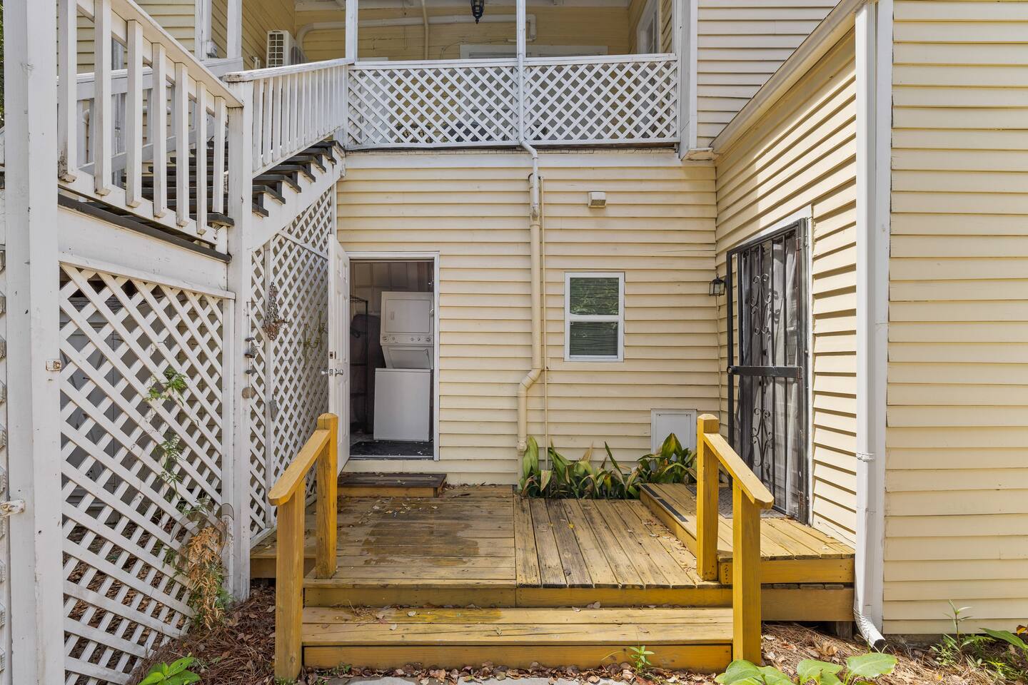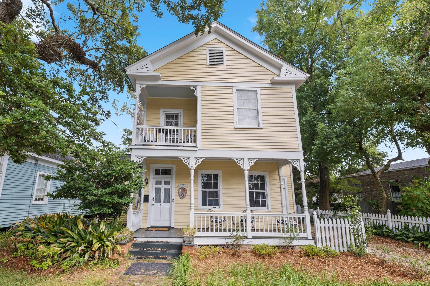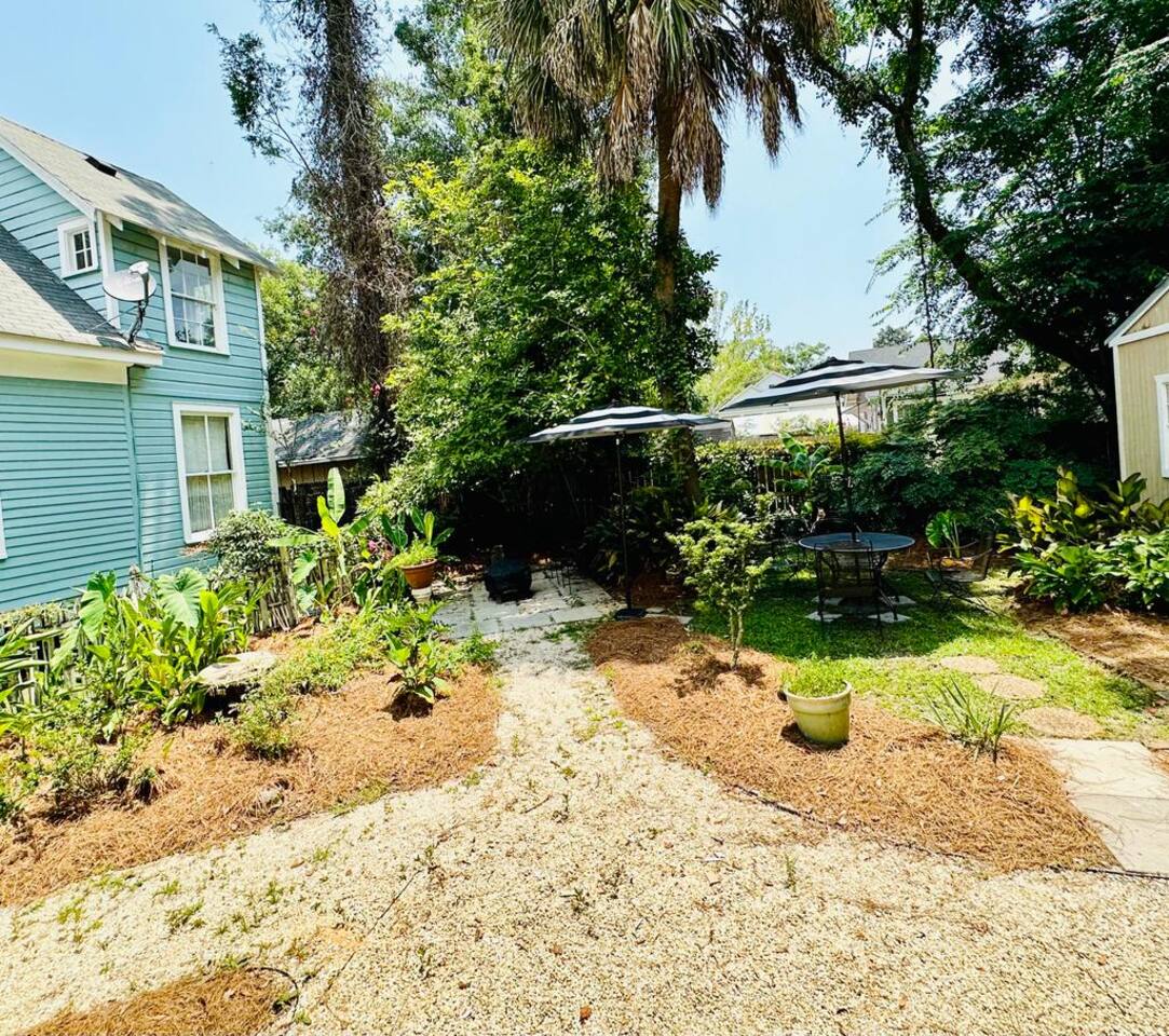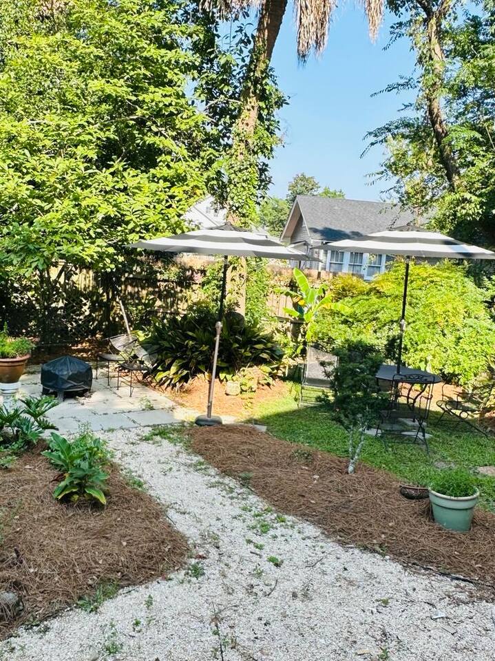 You'll be able to access the home through a private entrance directly off the front porch. The backyard with swings, table and chairs for outdoor eating and a fire pit is accessible to you, as well as other guests staying at the property. The laundry facility is also a shared space located around the back of the house through a door unrelated to other units. The driveway is reserved for guests in the upstairs unit so please don't park and block them in :). You'll love exploring the wonderful neighborhood and all that Mobile has to offer!